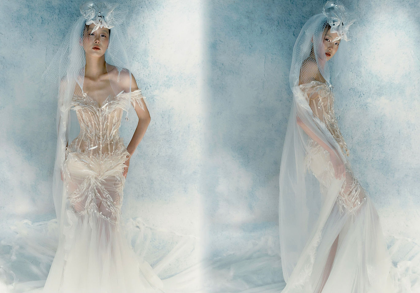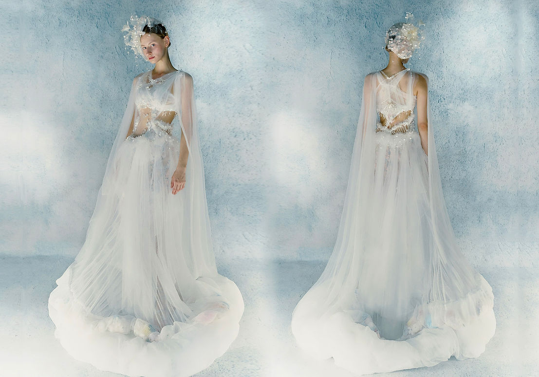 Inspired by the ancient myth of Lilith — the “first awakened being” before Adam — this collection embodies independence and creative power. Using the garden as a metaphor, it transforms feminine strength into a tangible stage: delicate gauze, entwining vines, and interlaced light and shadow evoke the awakening of women’s vitality. Each piece stands like a sculpture in the garden — fragile yet resilient — finding a subtle equilibrium between softness and strength.